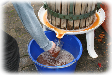 Frisch vom Kelter schmeckt der Apfelmost auch den Jüngsten, ist "lecker" und "gesund".