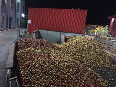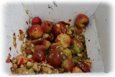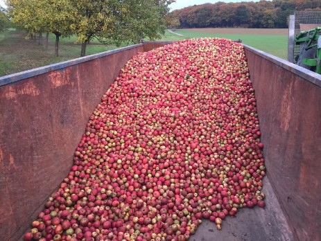 Zu aller erst müssen die Äpfel besorgt werden. Der Apfelbauer nimmt nicht nur die Äpfel vom Baum, sondern auch die welche bereits unter dem Baum im Gras liegen und teilweise etwas unansehnlich sind. Faules Obst wird nicht mehr genommen und aussortiert.