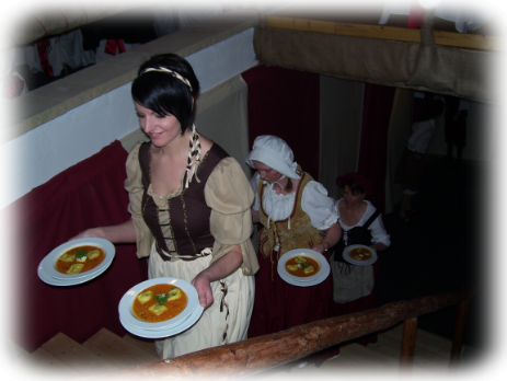 Es stehen Sitzplätze für bis zu 100 Personen am festlich gedeckten Tisch zur Verfügung.